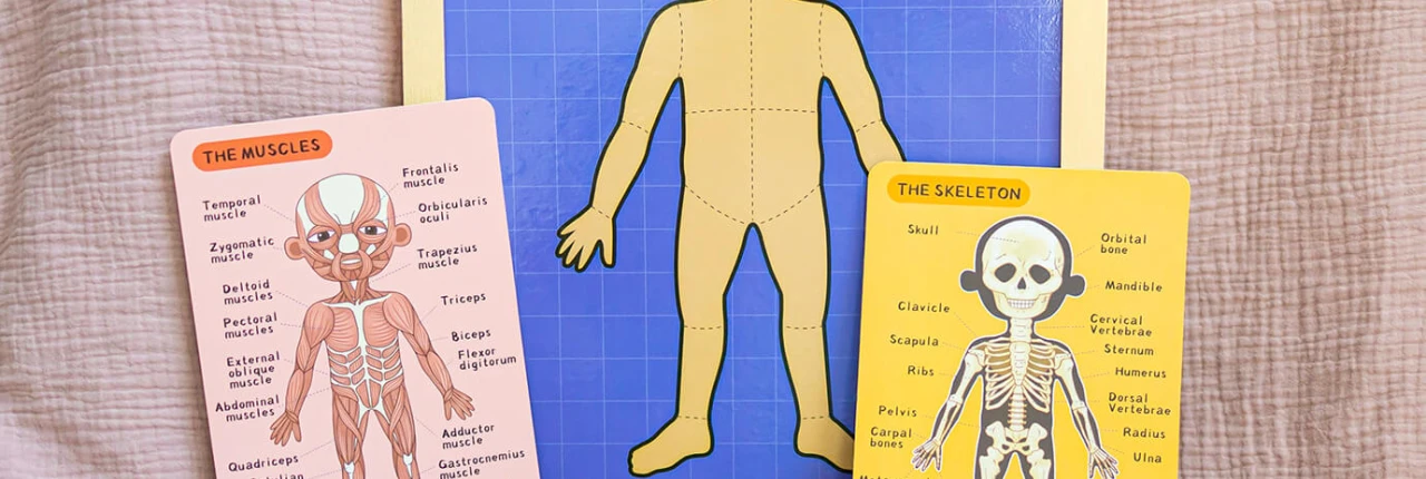 Magnetická skládačka Lidské tělo Prozkoumejte a poskládejte lidské tělo Magnetická tabule se čtyřmi designy lidského těla – kostra, svaly, tělo a orgány. Části těla jsou magnetické a je třeba je správně poskládat dohromady.Předlohové karty v angličtině popisují části lidského těla Vaše děťátko se do..